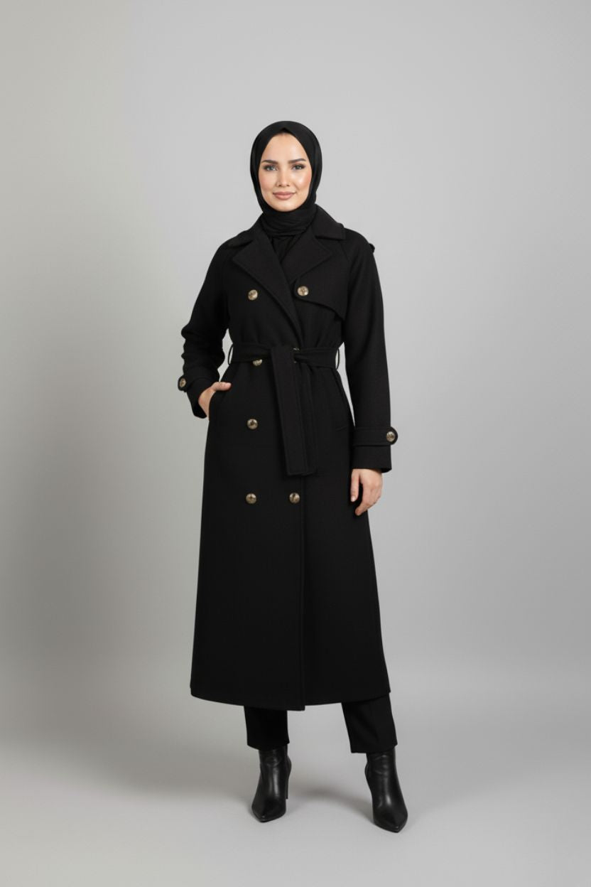Midnight Grace Long Modest Trench Coat | Black